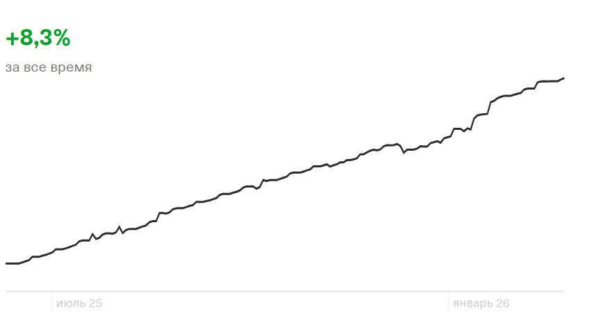Стратегия «Накопительная» была запущена в июне 2025 года и на конец декабря 2025 года показала доходность + 8.3%.